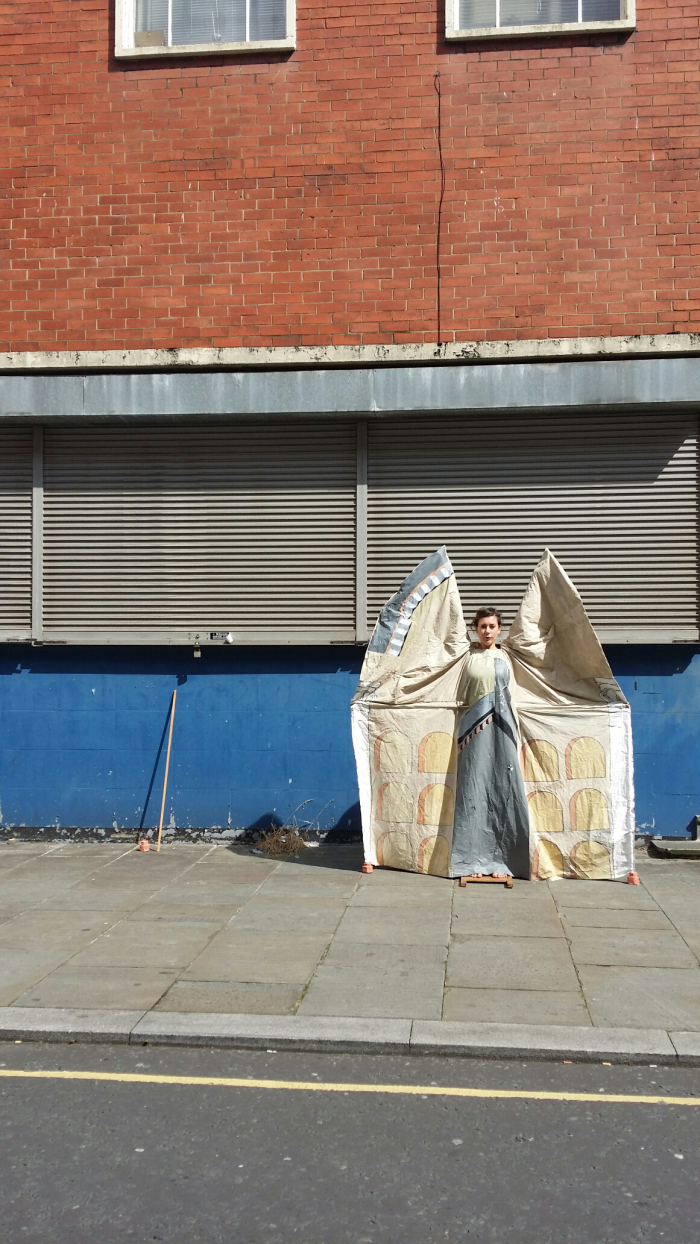 What came from this point of interest from the artist was a site-specific architecturally inspired performance which appeared in and around the Northern Art Carbooty venue, working as an not only an intervention but also a celebration of Ancoats on the day!.